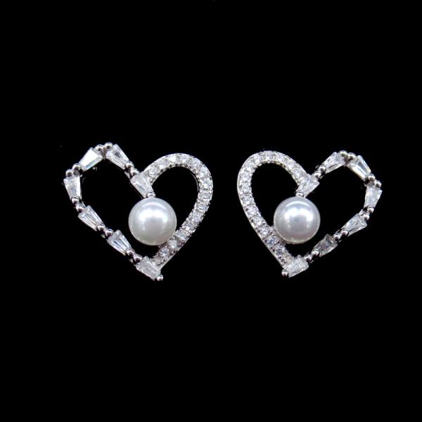 Fashion 925 Silverl Earrings White Zircon With Fresh Water Pearl Heart Shaped Images |
