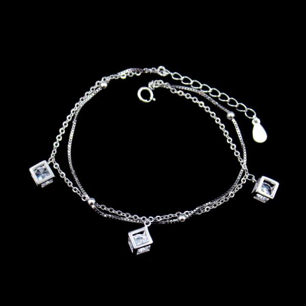 Silver Bracelet Cube And Zircon Cross Chain Double Rhodium Plated / Sterling Silver Box Chain Images |