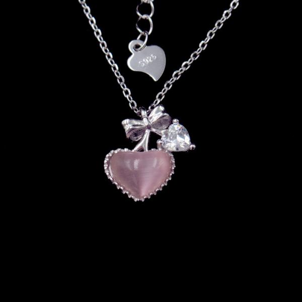 Plating Gold Jewelry Heart And Bow Tie Cat Eye Stone Sterling Silver Jewelry